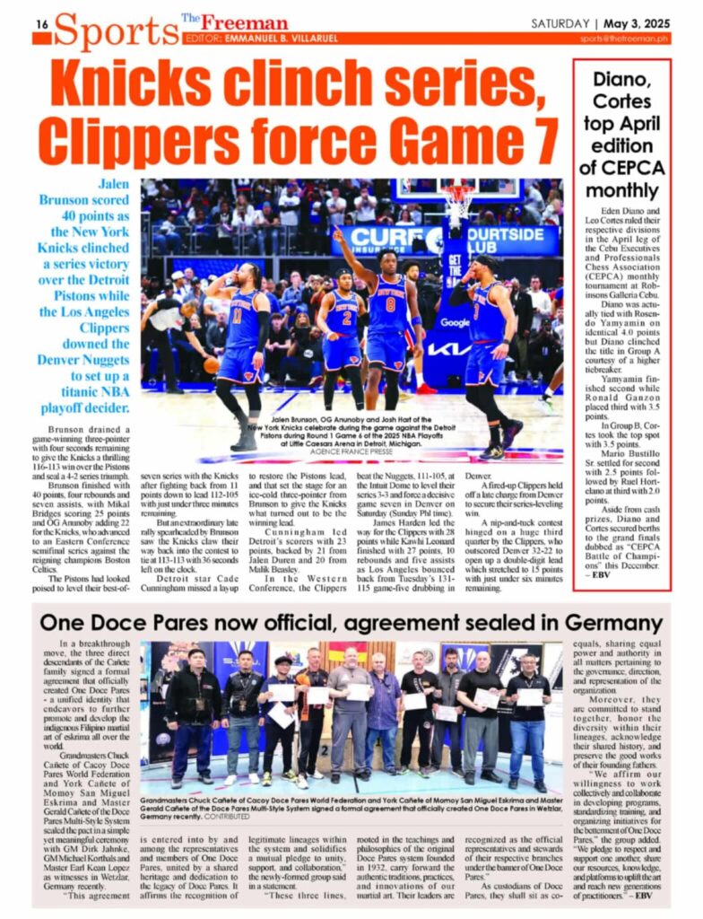 After years of disagreements, the three descendants and current leaders of Doce Pares – Grandmaster Gerald Cañete (Multi-Style Doce Pares), Grandmaster Chuck Cañete (Cacoy Doce Pares), and Grandmaster York Cañete (Momoy Cañete San Miguel Eskrima)– came together by invitation of Grandmaster Dirk Jähnke (Momoy Cañete San Miguel Eskrima Europe) and put aside their family feud in July 2024 in Badian, Cebu, together with Senior Master Earl Keane Lopez (Chilla) (Multi-Style Doce Pares), and in the presence of Supreme Grandmaster Cano Cañete (Momoy Cañete San Miguel Eskrima/ Orihinal San Miguel Eskrima). They came together to revive the original spirit of the union and establish „One Doce Pares.“